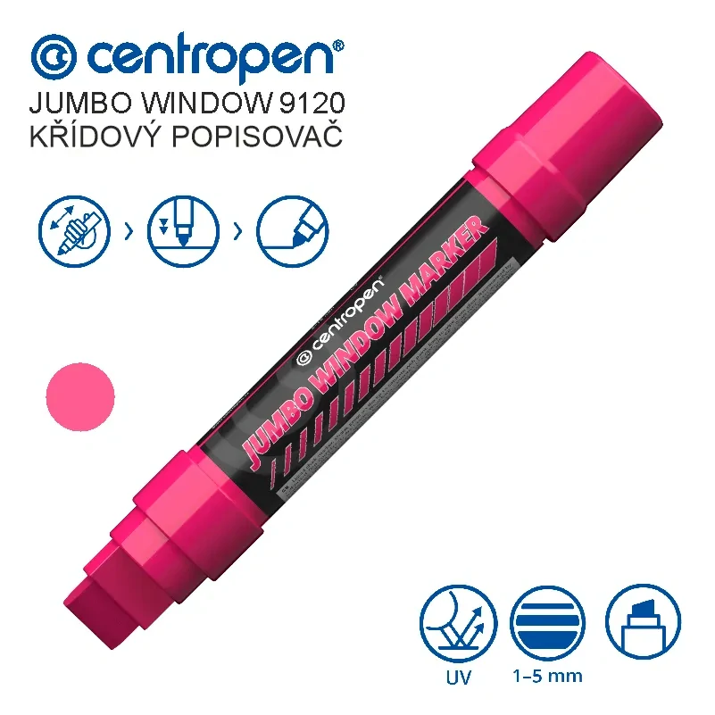 Křídový popisovač Centropen 9120 – růžový, hrot 2–15 mm149 Kč/ ks123 Kč bez DPH