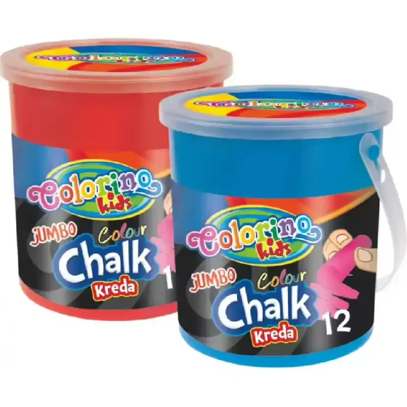 Křídy na chodník v kyblíku - barevné, 12 barev - kulaté