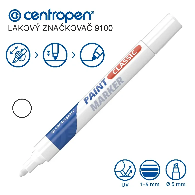 Lakový popisovač Centropen 9100 – bálý, hrot 1–5 mm