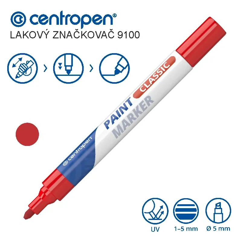 Lakový popisovač Centropen 9100 – červený, hrot 1–5 mm