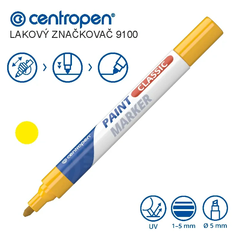 Lakový popisovač Centropen 9100 – žlutý, hrot 1–5 mm