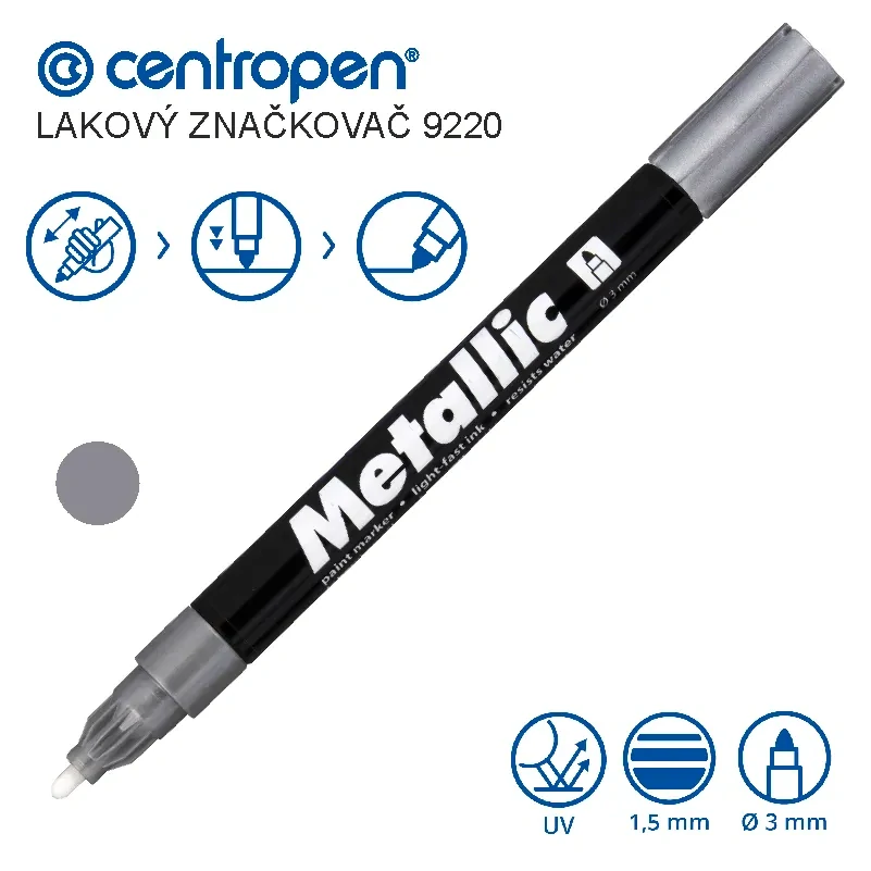Lakový popisovač Centropen 9220 – stříbrný, hrot 1,5 mm