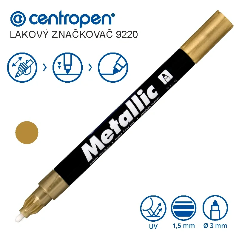 Lakový popisovač Centropen 9220 – zlatý, hrot 1,5 mm