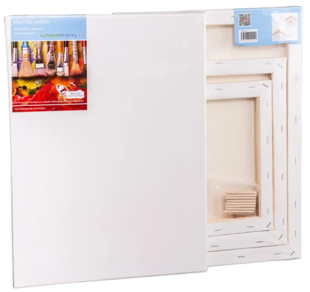 Malířská plátna 3 ks, 18x24, 24x30, 30x40 cm s gramáží 380 g/m2, 100% bavlna, 3 x šepsováno