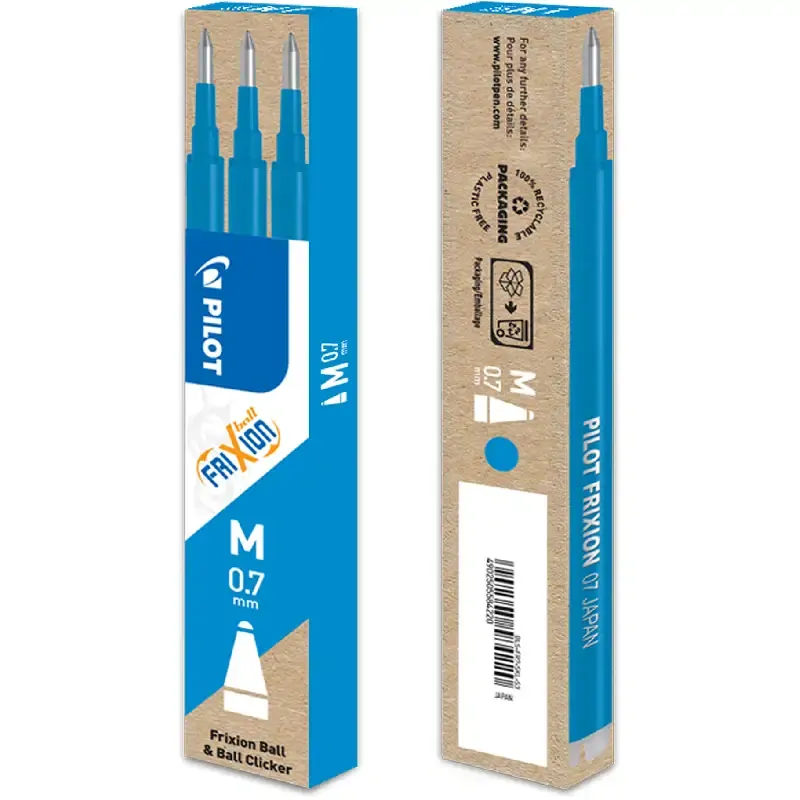 Náplň do gumovacího pera PILOT FriXion Ball 0,7 - nebeská modrá - 3ks133 Kč/ ks110 Kč bez DPH