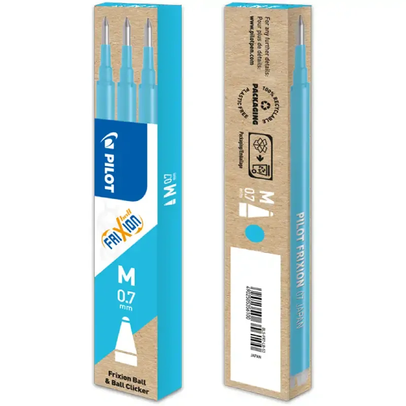 Náplň do gumovacího pera PILOT FriXion Ball 0,7 - světle modrá - 3ks133 Kč/ ks110 Kč bez DPH