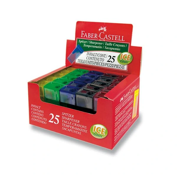 Ořezávátko Faber-Castell Flue - s odpadní nádobkou - 1 otvor, mix barev28 Kč/ ks23 Kč bez DPH