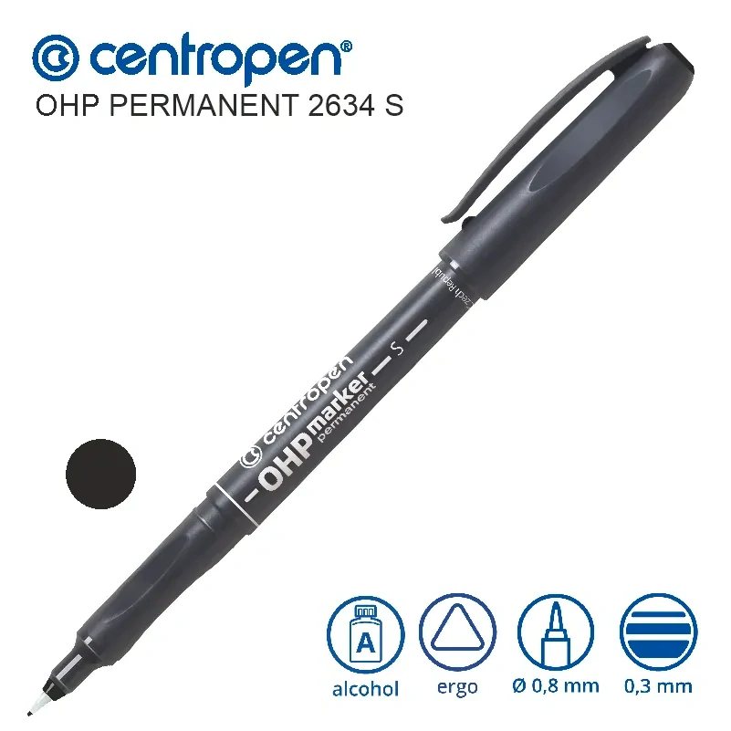 Permanentní popisovač Centropen OHP 2634 S – černý, tenký hrot 0,3