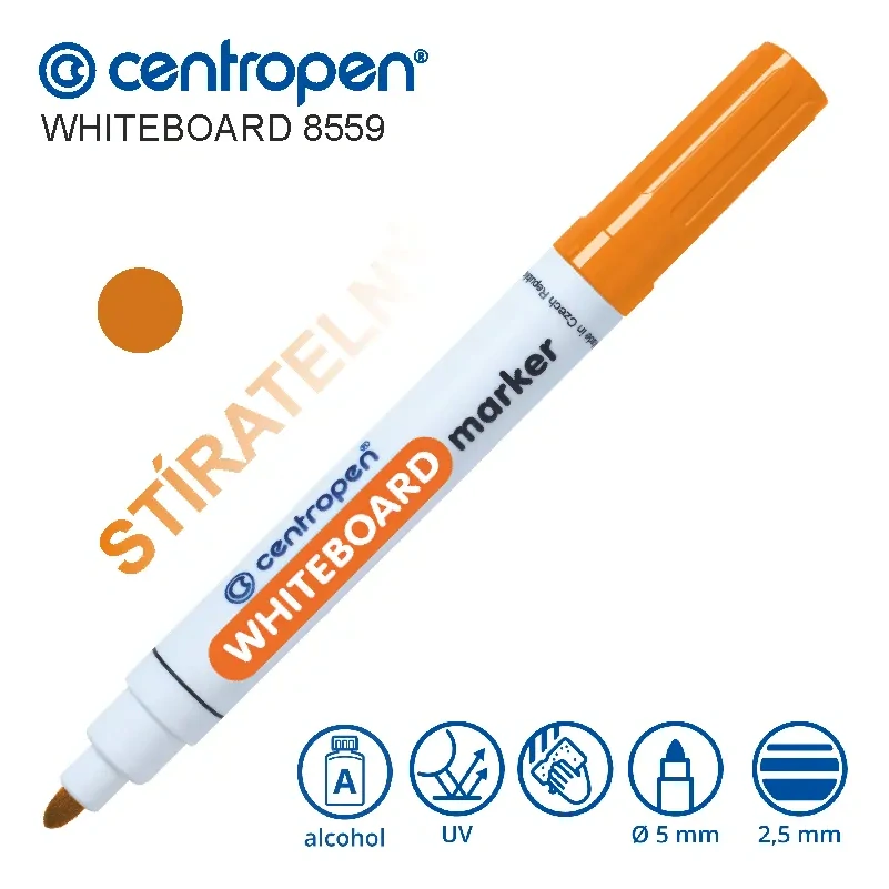 Stíratelný popisovač Centropen Whiteboard 8559 – oranžový, kulatý hrot 2,5 mm26 Kč/ ks22 Kč bez DPH