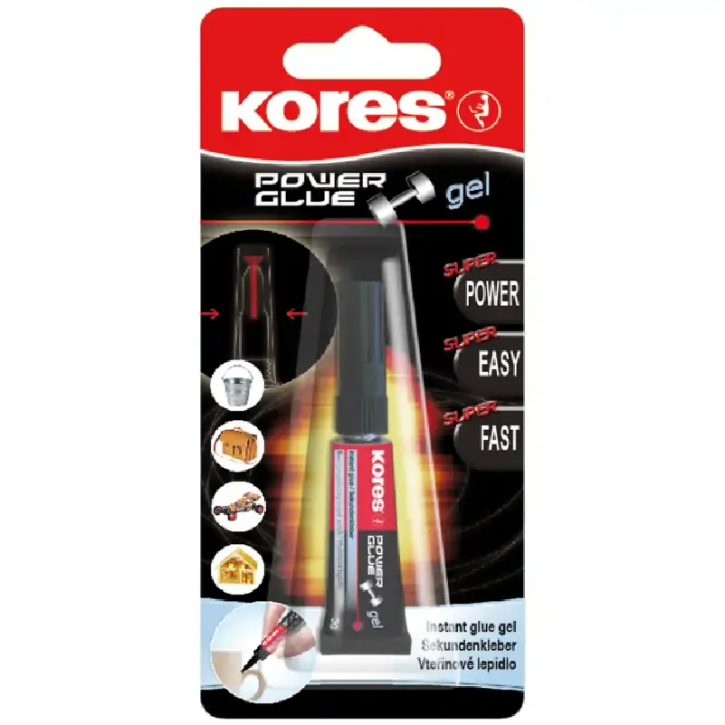 Vteřinové lepidlo KORES Power Glue GEL - 3g51 Kč/ ks42 Kč bez DPH