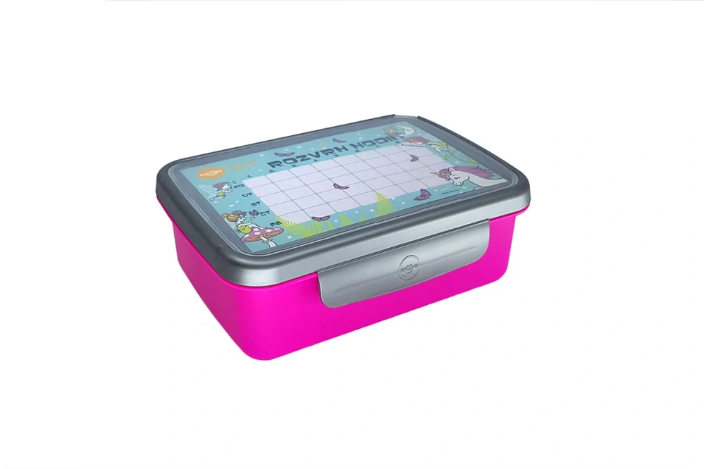 Ke svačinovému boxu je možné objednat i náhradní misku, víčko, dělící přepážku a čirou průhledku.